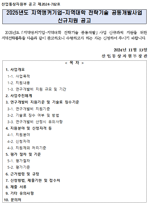 2025년도 지역앵커기업-지역대학 전략기술 공동개발사업 신규지원 공고