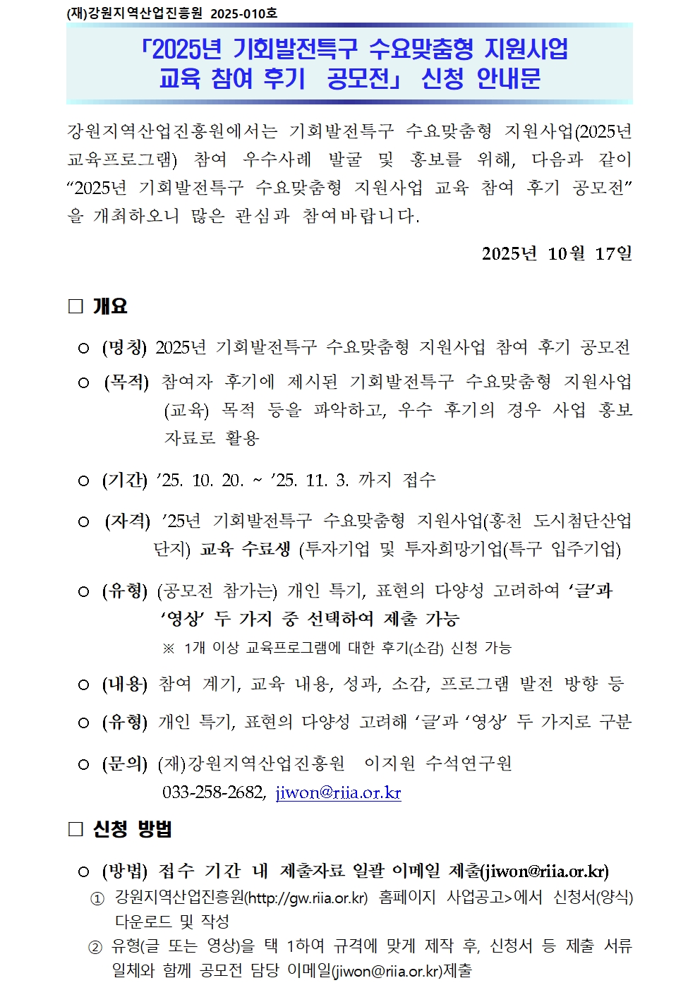 2025년 기회발전특구 수요맞춤형 지원사업 교육 참여 후기 공모 신청 공고문.pdf