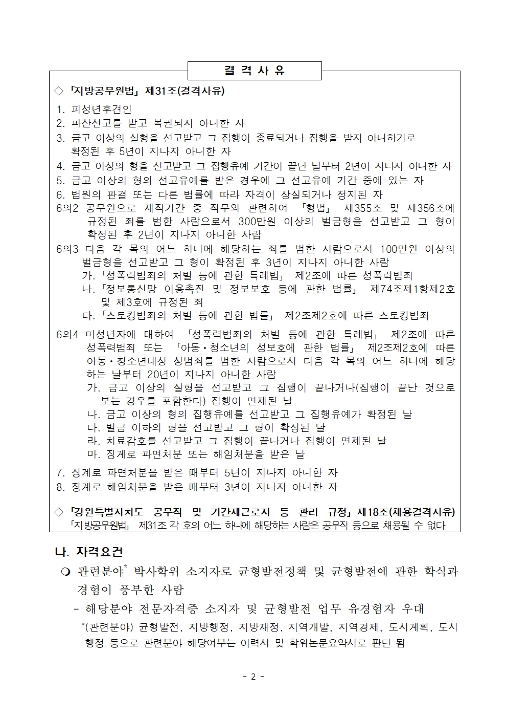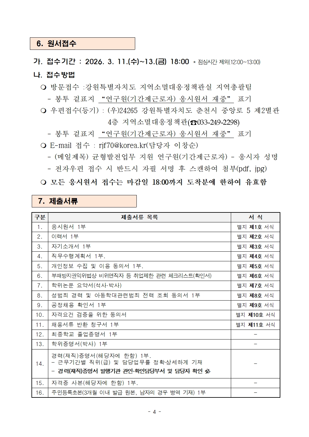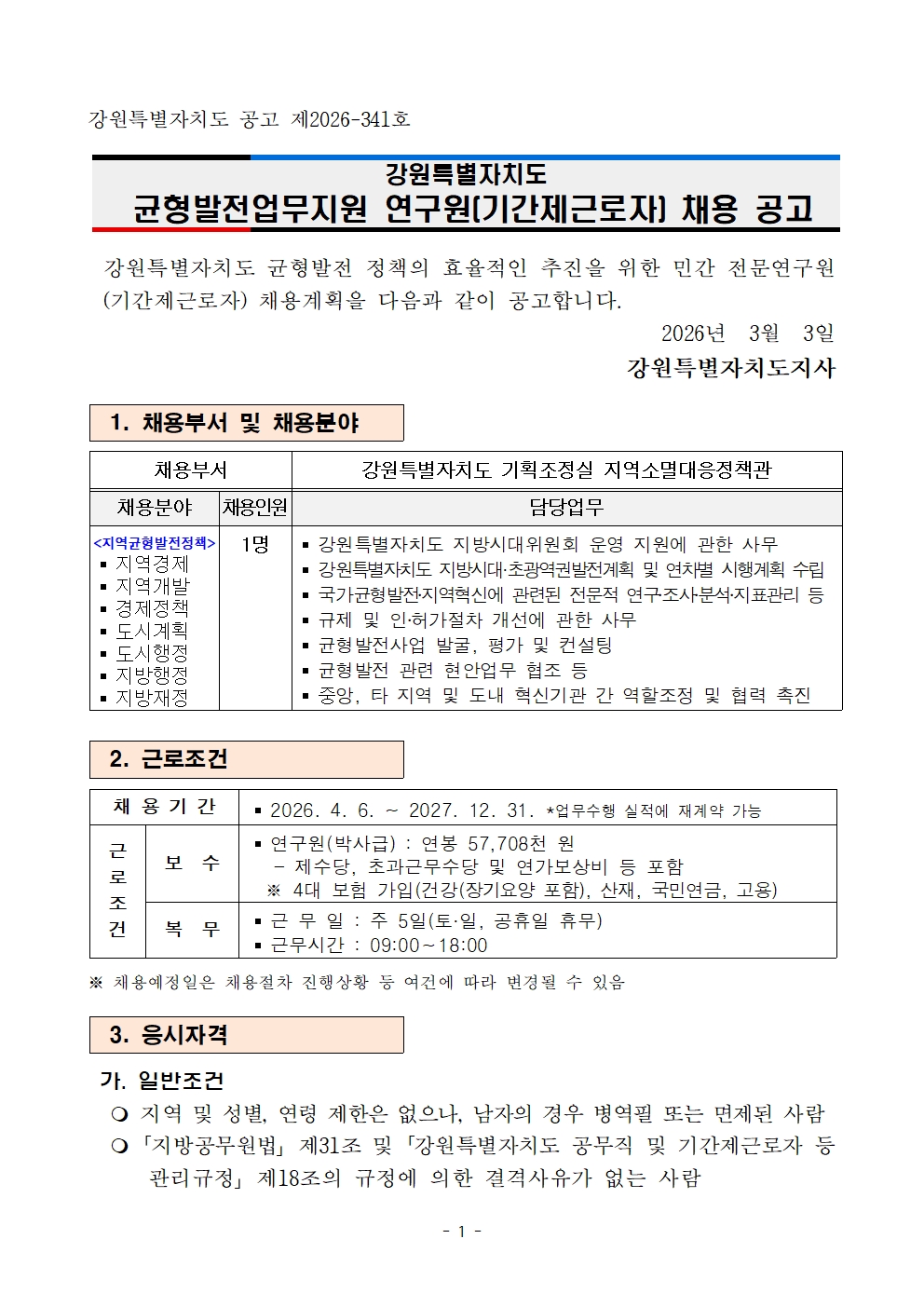 [강원특별자치도 공고 제2026-341호] 균형발전업무지원 연구원(기간제 근로자) 채용 공고