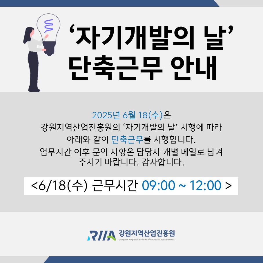 2025년 상반기 '자기개발의 날' 단축근무 안내